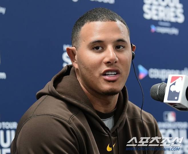 미국프로야구(MLB) 월드투어 서울시리즈가 열리는 서울 고척스카이돔. 16일 오후 샌디에이고 매니 마차도가 인터뷰하고 있다. 고척=정재근 기자 cjg@sportschosun.com/2024.3.16/