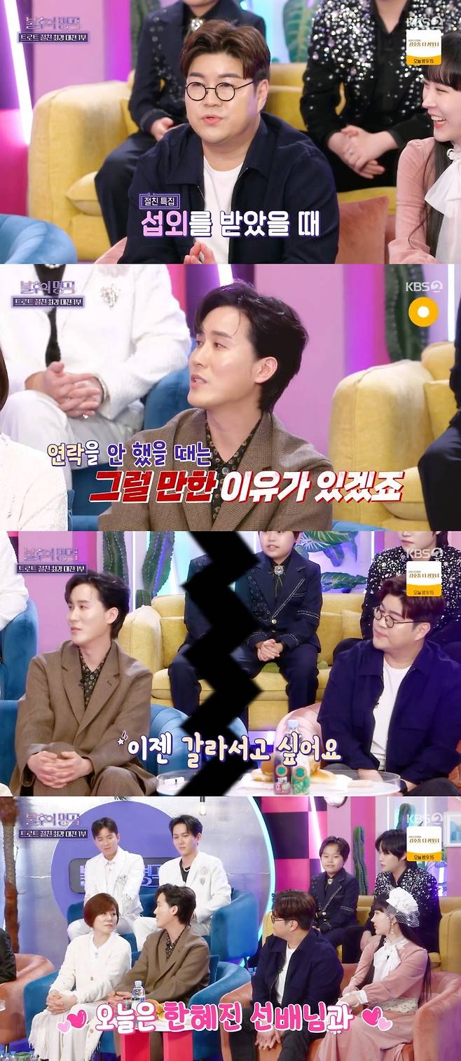 이어서 신유는 "사실은 좀 이제 지겹다. 이제는 갈라서고 싶다"라고 너스레를 떨며 박구윤 대신 선배 한혜진을 소개했다.