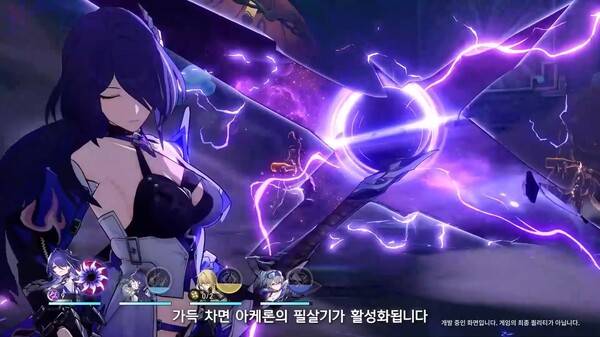Hanzii "아케론의 필살기에는 필드 화면의 색이 바래는 표현이 있다. 시간이 정체되고 보라색 헤어 색상도 흰색으로 변한다. 아케론이 빗방울을 절단하고 전반적인 공격 속도도 달라진다. 스킬은 황폐하고 산산조각 난 느낌이 가득하다. 공허와 고독이 존재하는 느낌이다"