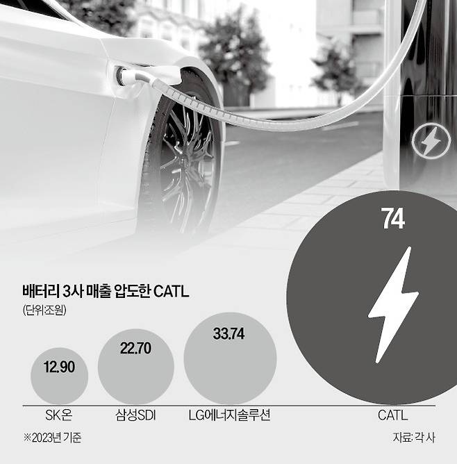 LG에너지솔루션(33조7400억원), 삼성SDI(22조7000억원), SK온(12조9000억원) 등 배터리 3사의 매출을 합쳐도 CATL에 미치지 못했다.