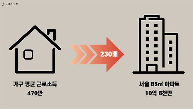 근로소득의 절반을 부동산 구입을 위해서만 저축한다고 가정해도 2022년 기준으로 22년을 모아야 수도권 아파트 한 채를 겨우 구입할 수 있다.