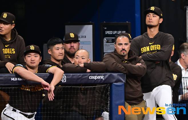 이날 샌디에이고 다르빗슈,고우석이 경기를 관전하고 있다.