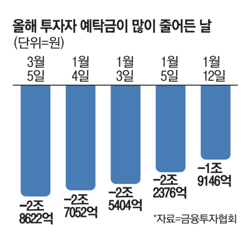 증시를 빠져나간 돈은 가상자산 시장으로 흘러간 것으로 보인다. 금융권에 따르면 지난달 말 기준 5대 시중은행 요구불예금 계좌의 잔액은 614조원으로 집계됐다. 1월 말보다 23조원 넘게 급증한 수치다.