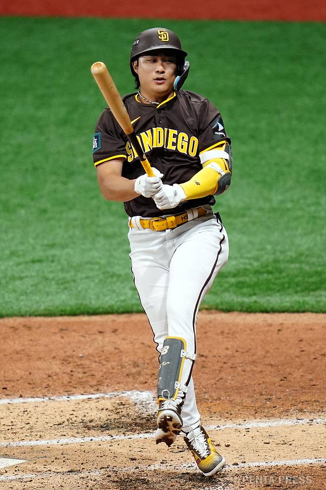 득점 없이 팽팽한 경기가 이어졌고 샌디에이고가 1점 앞선 상황, 9회 노시환의 안타에 이어 문보경이 볼넷으로 출루에 성공했다.