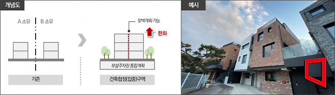 단독 개발이 어려운 맹지, 협소·부정형 필지 등은 건축협정을 통해 공동개발이 가능하다. 신축을 원치 않는 경우 리모델링을 통해 증·개축을 할 수 있다. 건축기준을 완화해 건축주가 실질적으로 신축이나 리모델링을 할 수 있도록 도시계획, 건축설계, 건축시공, 법률, 금융, 세무 등 분야별 전문가인 휴머네이터를 매칭한다.