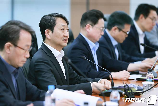 (서울=뉴스1) = 안덕근 산업통상자원부 장관이 18일 오후 LG에너지솔루션 오창 에너지플랜트에서 이차전지 수출현장 점검회의를 주재하고 있다. (산업통상자원부 제공) 2024.3.18/뉴스1