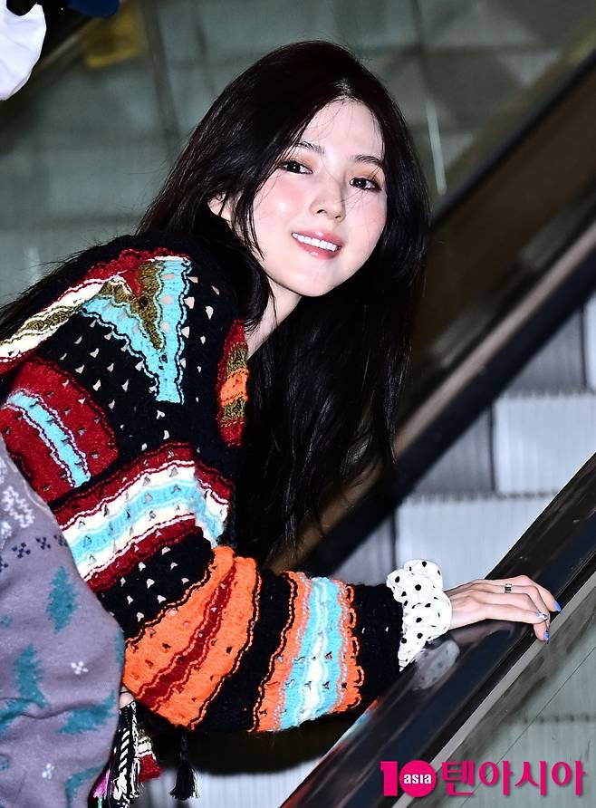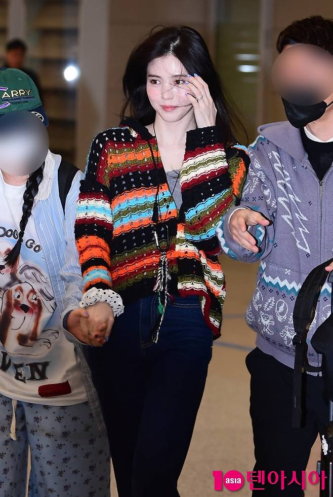 이날 한소희는 공항에 자리한 취재진을 의식했는지, 풀 메이크업에 화려한 가디건, 밝은 미소를 지어 보였다.