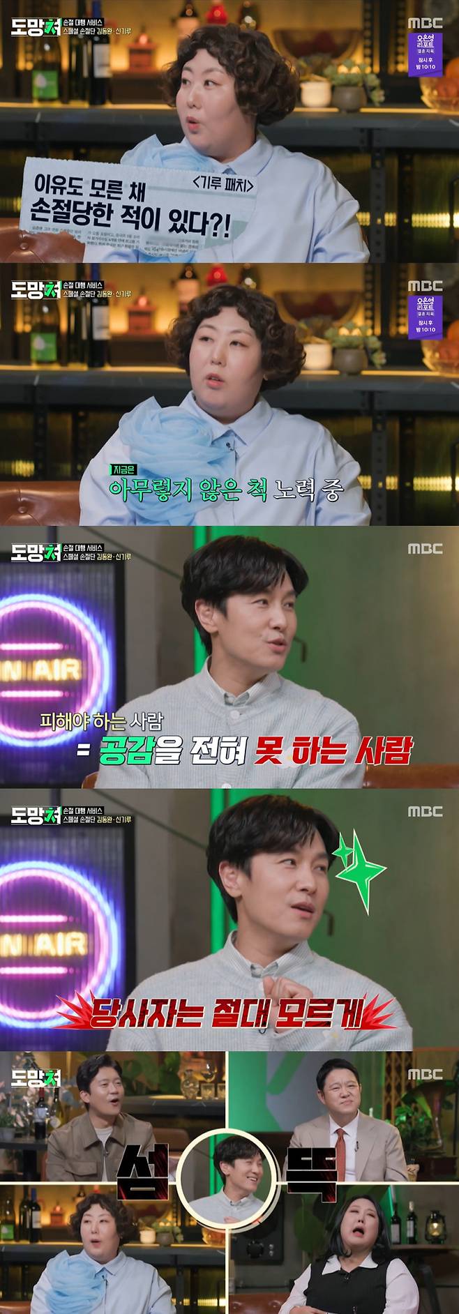 18일 방송된 MBC '도망쳐'에서는 김동완, 신기루가 스페셜 손절단으로 출연했다.