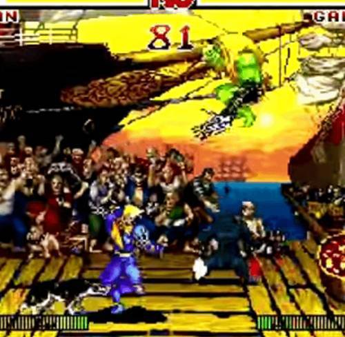 조기자 : 여튼 '사무라이 쇼다운 2' 부터는 무릎찍기 식으로 교체되어서, 저 잡기 기술은 1탄에서만 볼 수 있는 유니크한 잡기라고 하겠습니다.