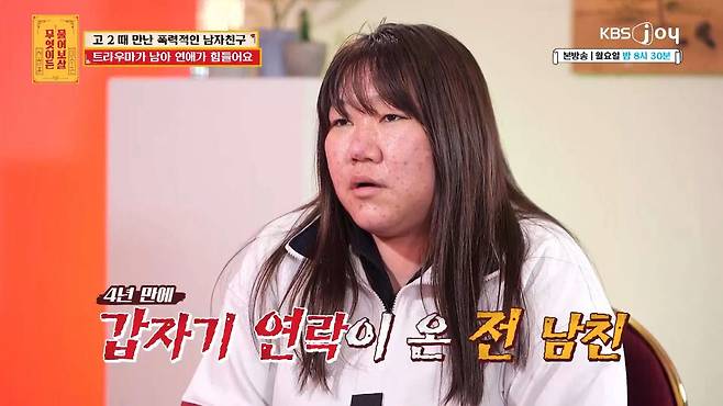 고등학교 2학년 때 온라인 커뮤니티에서 만난 전 남자친구는 연애 두 달 후 갑자기 "일본으로 유학 간다"라며 잠수 이별을 해놓고 4년 만에 다시 자신을 찾아왔다고 밝혔다.