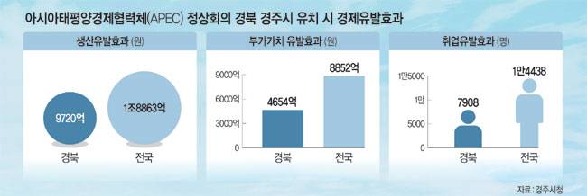 ◇대한민국 경제 기적 경험 공유 = 시는 경주가 국제적인 관광도시이지만 첨단과학산업도시라는 점도 역설하고 있다. 한국수력원자력 본사, 월성원자력발전소를 비롯해 원전의 블루오션인 소형모듈원자로(SMR) 연구개발(R&D) 전초기지인 문무대왕과학연구소, 중수로해체기술원, 양성자가속기센터, 경주 e-모빌리티 연구단지 등 원전·미래 자동차산업 분야 기틀을 마련 중이다. 특히 시는 SMR 국가산업단지도 유치한 상태다. 이에 따라 시는 이 회의를 한국의 원전과 에너지산업 등을 세일즈할 절호의 기회로 삼고 있다. 시는 APEC이 경주에 유치되면 전국적으로 생산유발효과 1조8863억 원, 부가가치 유발효과 8852억 원 등 총 2조7715억 원의 경제적 파급효과를 예상했다.