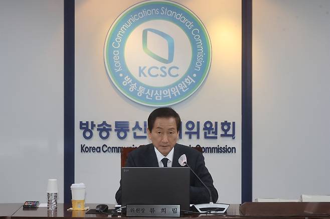 | ▲ 류희림 방송통신심의위원장이 지난 1월 22일 서울 양천구 목동 방송통신심의위윈회 대회의실에서 열린 제3차 전체회의에서 인사말을 하고 있다. |