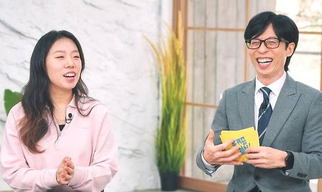 18일 예능 '유퀴즈 온 더 블럭'(이하 '유퀴즈') 공식 소셜네트워크서비스에는 유재석과 최윤아 양이 함께 찍은 사진이 올라왔다.