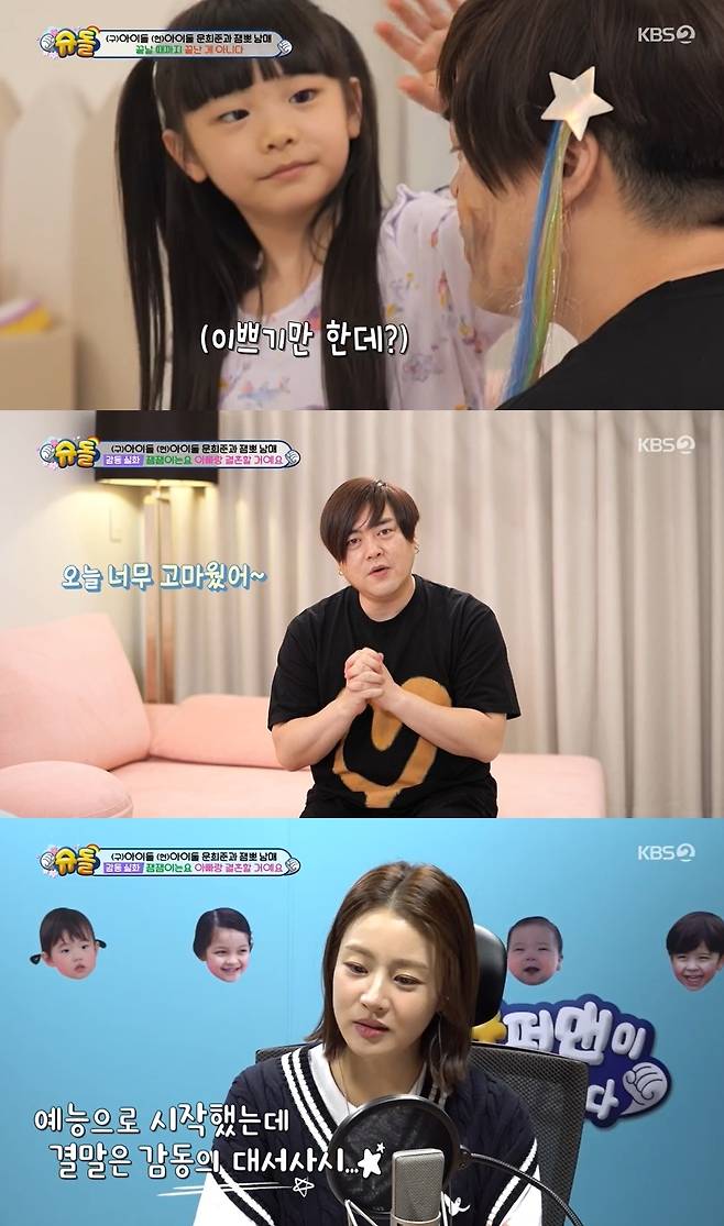 희율의 사랑스러운 모습에 스튜디오는 "문희준씨는 롤러코스터를 100번 태워 줘야 한다", "마음이 너무 예쁘다"라며 기특함을 감추지 못했다.