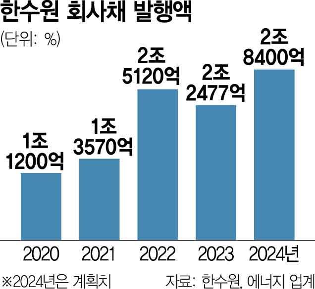 20일 에너지 업계에 따르면 한수원은 최근 이사회에서 올해 회사채 발행 계획안을 심의·의결했다. 올해 1조 5000억 원 규모의 원화채를 3회 이상에 걸쳐 분할 발행하는 것이 핵심이다. 채권 만기는 2년 이상 30년 이내다. 한수원은 외환 당국인 기획재정부와 외화채 발행 규모와 시기도 협의 중이다. 발행액은 10억 달러(약 1조 3400억 원)가 유력하다.