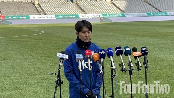 90도로 인사한 이강인은 "많이 찾아와주셔서 감사드린다. 이런 기회를 주신 황선홍 감독님에게 감사 인사를 드린다. 아시안컵 기간 동안 너무 많은 사랑과 관심 그리고 응원을 받았는데, 그만큼 보답을 하지 못했다. 실망시켜 죄송하다는 말씀을 드리고 싶었다"며 사과했다.