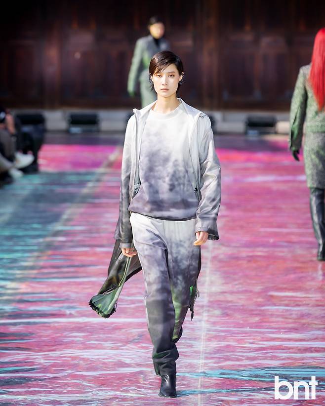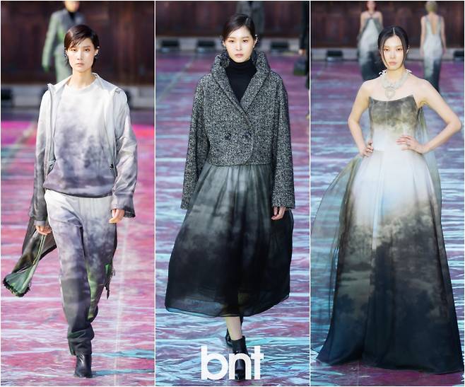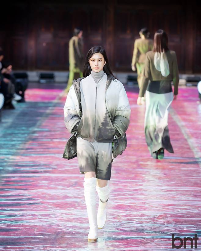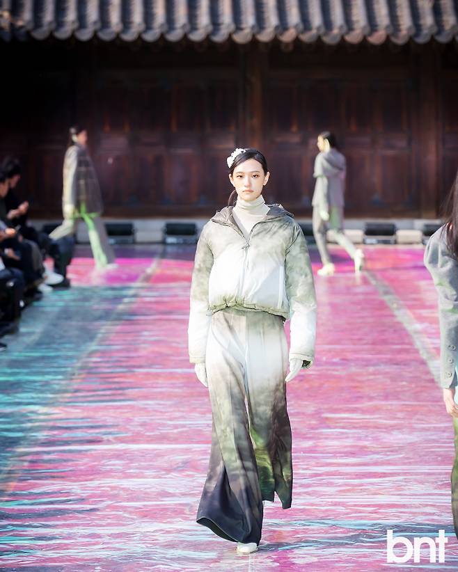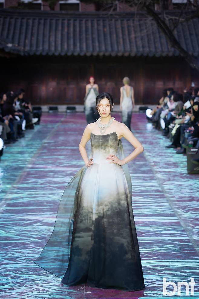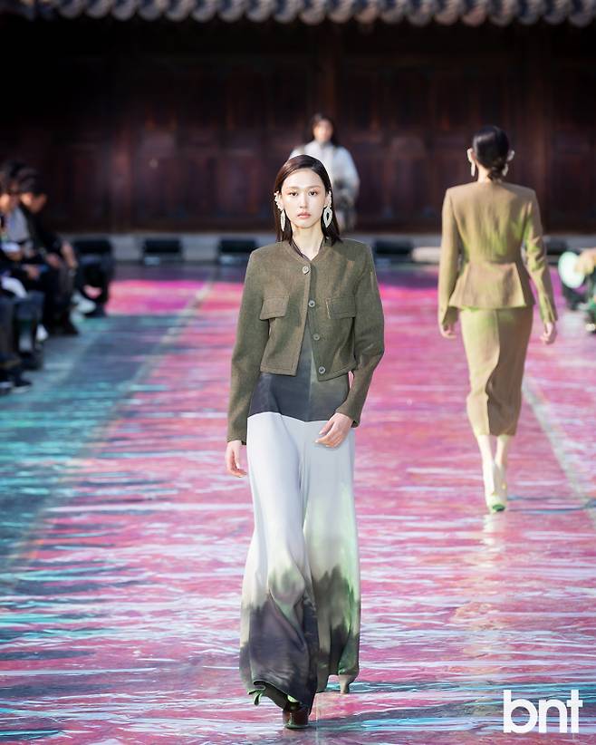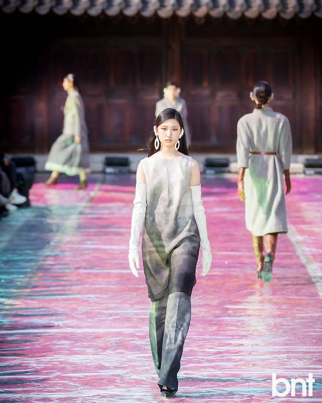 모델 서윤, 차수민, 홍주하, 이채은, 이현송, 황정원, 이예린, 김성희, 김희원, 김다슬이 워킹을 선보이고 있다.