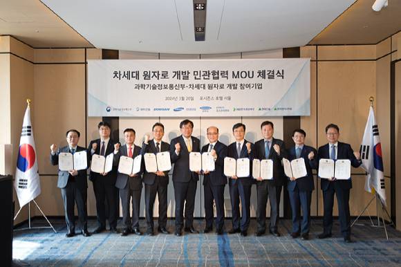 과학기술정보통신부는 20일 차세대 원자로 개발과 관련한 민관 협력 업무협약(MOU)을 체결했다. MOU에는 센추리, 삼성중공업, 두산에너빌리티, HD한국조선해양, 대우건설, 포스코이앤씨, 현대건설, 현대엔지니어링 등 기업 8곳이 참여했다.