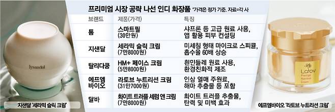 이런 소비 트렌드 변화에 맞춰 가성비를 추구하던 기존 인디 브랜드들도 고가 시장 공략으로 방향을 틀고 있다. 세럼을 스프레이 형태로 만든 ‘스프레이 세럼’ 으로 2700만병 이상 판매 기록을 달성했던 달바는 최근 고가 기능성 신제품을 대거 출시했다. 이 회사가 출시한 화이트트러플 더블 세럼 앤드 크림은 7만8000원, 앰플 밤 화이트트러플 안티링클 크림은 7만8000원이다.