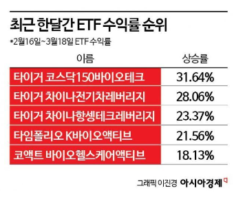 - 바이오 ETF 수익률, 한달여간 20~30%대 ↑