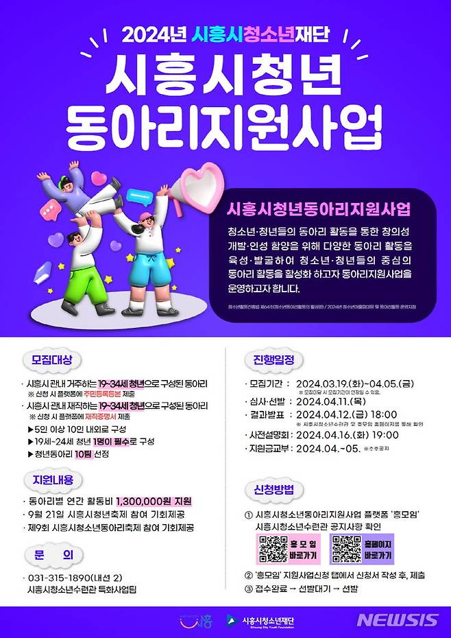 경기 시흥시가 '청소년·청년 동아리 지원 사업' 참여자를 모집한다.