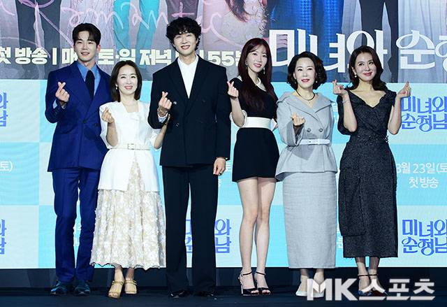배우 고윤, 윤유선, 지현우, 임수향, 차화연, 이일화(좌측부터)가 21일 오후 서울 마포구 상암 스탠포드 호텔에서 진행된 KBS 2 새 주말드라마 ‘미녀와 순정남’(극본 김사경, 연출 홍석구) 제작발표회에 참석해 포즈를 취하고 있다.