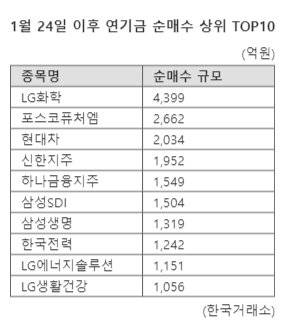 연기금은 연속 순매수가 시작된 지난 13일 이후 삼성전자 주식을 가장 많이 사들였다.