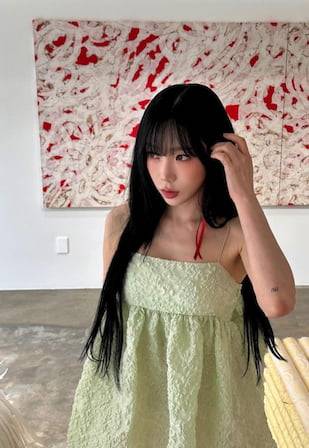 태연도 자신의 인스타그램에 플라워 프린팅이 돋보이는 실크 드레스를 입고 앙상한 몸매를 자랑했다.