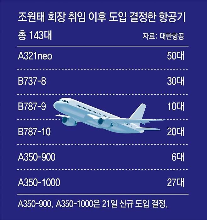 이번 항공기 도입 결정은 대한항공의 항공기 운영 방식의 대대적인 변화를 의미한다. 고 조양호 한진그룹 선대회장은 다양한 항공기를 사들여 운영했던 것으로 유명하다. ‘대한항공엔 없는 비행기가 없다’는 말이 있을 정도였다. 장남인 조 회장은 반대다. 조 회장은 “항공기 종류를 최대한 단순화해야 한다”라는 방침을 줄곧 피력해 왔다. 외연 확장보다 실용을 추구하겠다는 최근 젊은 총수들의 기조와 비슷하다.