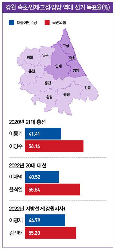 22대 총선에서 속초·인제·고성·양양에 출마한 계기는."윤석열 정부 출범 이후 2년 동안 대한민국은 모든 분야에서 퇴행을 거듭해 왔다. 정치·경제 분야는 말할 것도 없고, 외교 및 안보 분야의 퇴행으로 큰 위기감을 느낄 수밖에 없는 시간이었다. 특히 남북관계에서 한반도 군사적 긴장이 높아진 상황은 어떤 무력 충돌이 발생해도 이상하지 않을 정도로 악화됐다. 이런 상황은 지켜보기 힘들어 출마했다. 또한 설악권 지역은 남북 접경지역이고 6·25전쟁 수복지구다. 지역 주민들이 정전협정 이후 70년간 각종 군사적 규제로 인해 기본권 제약을 받아왔다. 어려운 시간 보내온 설악권 주민을 위해 내가 다른 사람보다 더 잘할 수 있는 일이 있다고 생각했다. 그런 생각이 저를 현실 정치에 발을 들이게 했다."