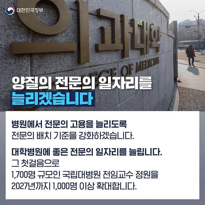 그 첫걸음으로, 1,700명 규모인 국립대병원 전임교수 정원을 2027년까지 1,000명 이상 확대합니다.