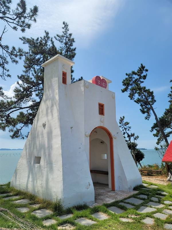 8번까지 순례를 마치면 가까운 곳에 있는 소악교회를 들러야 한다. 임병진 목사와 신도들이 자갈밭을 잔디밭과 꽃밭으로 가꾸었다. 섬에 있는 교회 중 가장 예쁜 교회일 것이다. 임 목사는 방송사 PD 출신으로 삶의 길에서 좌절했으나 개심하고 목회자의 길로 들어섰다. 교회 화장실에는 정현종 시인의 '섬'이라는 두 행 짜리 시가 쓰여 있다.