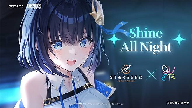 '스타시드' 두 번째 OST 'Shine All Night'은 인기 밴드 QWER이 가창에 참여한 곡으로, 정해진 운명을 떠나 빛나는 너와 내가 함께하는 미래로 나아가자는 내용을 담았다. 컴투스는 앞서 보컬의 정체를 암시하는 티저 영상과 멤버들의 라이브 및 인터뷰 영상 등으로 QWER이 참여한 이번 OST와 뮤직비디오에 대한 기대감을 높여왔다.