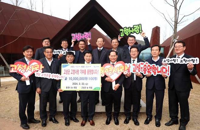 농협통영시지부와 통영시 6개 농·축협 임직원은 22일 고성군에 고향사랑기부금 1000만원을 기탁했다.