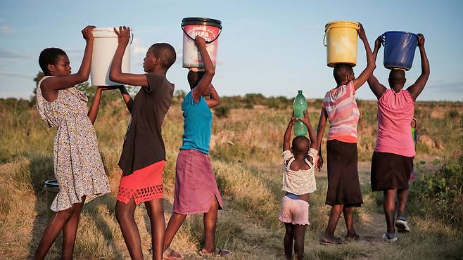 여기 두 장의 사진이 있습니다. 위 사진은 3월 초에 촬영된 짐바브웨 불라와요에서 폭염과 가뭄에 부모를 따라나선 아이들이 우물물을 길어 집으로 걸어가고 있는 장면입니다. 페트병에 물을 담아 머리에 인 모습이 안쓰러워 보입니다. 아래 사진은 비슷한 시기에 촬영된 인도네시아 발리 클룽쿵의 운다강에서 아이들이 물놀이하는 장면입니다. 시원한 물줄기를 즐기는 아이들의 표정이 정겹습니다. 지구에는 물 부족으로 어려움을 겪고 있는 사람들이 있지만 다른 한편에는 풍족한 물 덕분에 행복한 곳도 있습니다. 우리가 사는 지구에는 이처럼 두 장면이 공존하고 있습니다.