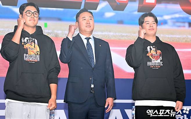 이날 채은성의 '이색 공약'은 팬들 사이에서 큰 화제가 됐다. 채은성은 "일단 4위를 시즌 목표로 잡았고, 5강에 들었을 때와 들지 못했을 때를 생각하고 왔다. 만약 포스트시즌에 올라가지 못하면 고참 형들과 12월에 태안 앞바다에 가서 입수하겠다"고 말했다. 반대로 팀이 포스트시즌에 진출할 경우 선수들이 신구장에서 열릴 2025시즌 홈 개막전에 팬분들을 초대해 무료로 관람할 수 있도록 하겠다는 게 노시환의 설명.