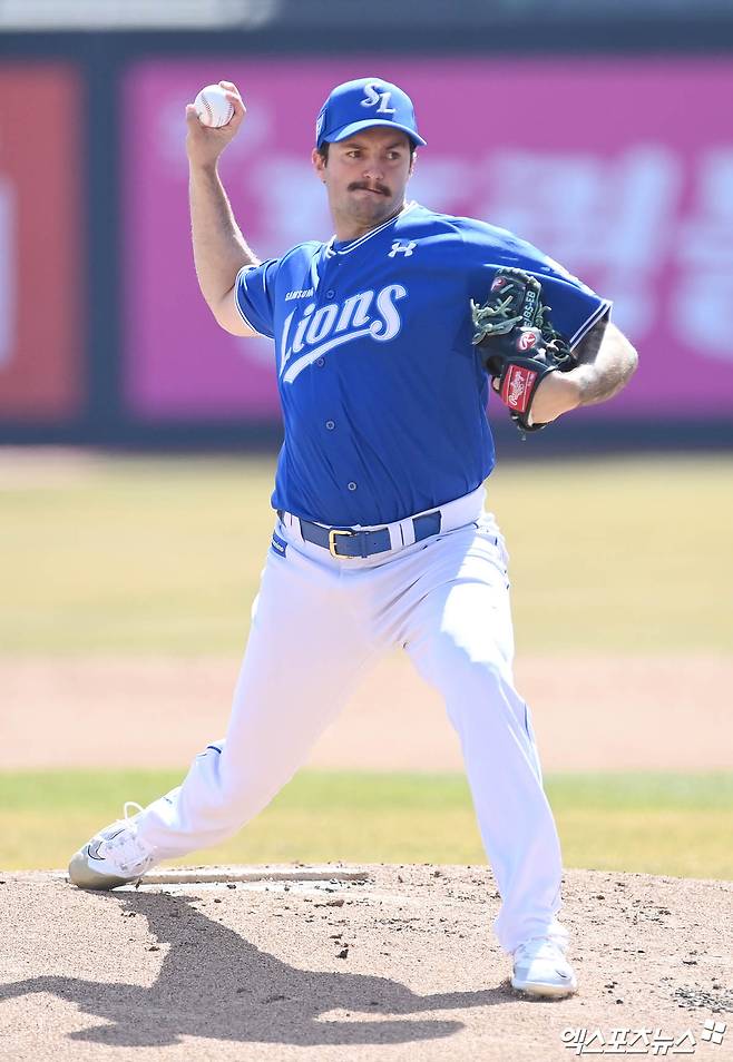 (엑스포츠뉴스 수원, 박지영 기자) 23일 오후 수원케이티위즈파크에서 열린 '2024 신한 SOL Bank KBO리그' 삼성 라이온즈와 KT 위즈의 개막전 경기, 1회말 삼성 선발투수 코너가 역투하고 있다.