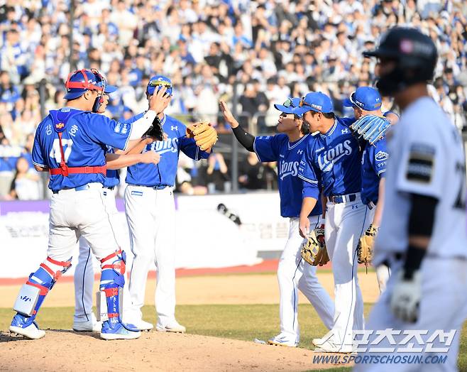 23일 수원 KT위즈파크에서 열린 KT 위즈와 삼성 라이온즈의 경기. 승리한 삼성 선수들이 기뻐하고 있다. 수원=박재만 기자pjm@sportschosun.com/2024.03.23/