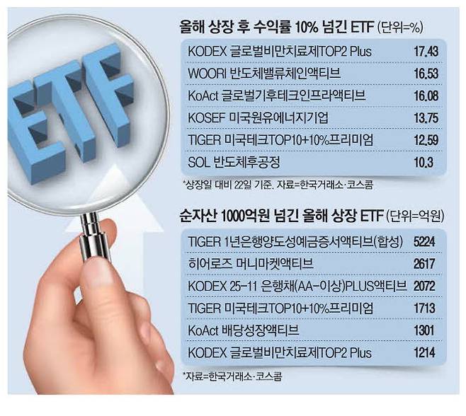 세 종목을 포함해 올해 상장한 ETF 가운데 순자산총액이 1000억원을 넘는 종목은 7개에 달했다.