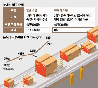 특히 면세제도 허점을 이용한 국내 재판매용 ‘쪼개기’ 직구가 기승을 부리면서 국내 소상공인은 물론 영세 제조업체에 큰 타격을 주고 있다. 한 사람이 한 달에 수 백번, 연간 수 억원 쪼개기 직구하는 사례도 심심치 않게 나오고 있다.