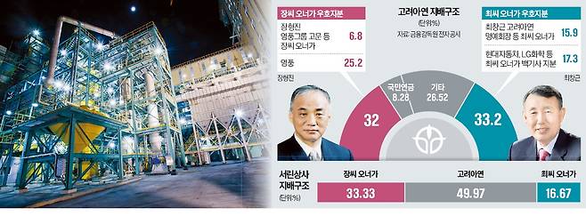 고려아연 관계자는 24일 “오랜 내부 회의 끝에 영풍을 더 이상 동업자가 아니라 경쟁자로 규정한다는 방침을 세웠다”고 말했다. 비철금속 분야에서 양보 없는 전쟁을 치를 각오가 돼 있다는 선언이다. 서린상사의 이사회 장악은 이를 위한 첫수다. 서린상사는 창업주 두 집안 간 우호 관계의 상징이다. 서린상사 지분은 최씨 일가와 고려아연을 합쳐 66.7%에 달한다. 그럼에도 대표이사는 지분 33.33%인, 영풍을 이끄는 장씨 일가 창업 3세(장세환)에 맡겼다.