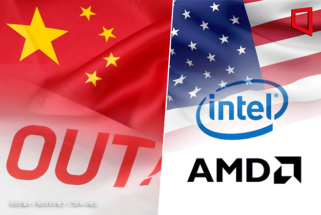 지난해 인텔과 AMD의 매출에서 중국이 차지하는 비중은 각각 27%, 15%다. 외신은 중국의 외산 하드웨어 퇴출 조치가 이들 기업에 타격을 입힐 것으로 전망했다.