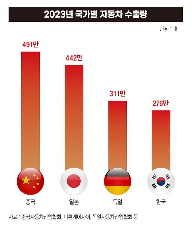 지난해 전 세계에서 자동차를 가장 많이 수출한 국가는 중국이었다. 2022년 독일을 제치고 자동차 수출 세계 2위를 차지한 뒤 1년 만에 정상에 올랐다. 가장 많은 소비자를 보유하고 있던 ‘세계 최대 시장’ 중국이 가장 무서운 공급자로 거듭난 것이다.