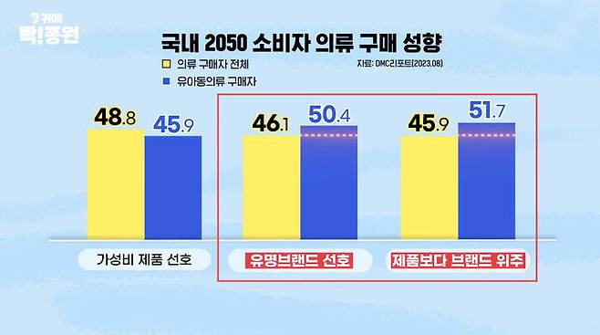 SBS가 위치한 목동은 아이들이 많은 동네이다. 근처 초등학교 앞을 지나다 보면 이제 막 입학한 1학년, 2학년 어린 친구들이 어른들도 입기 힘들다는 몽클레어 패딩을 입고 다니는 모습을 심심치 않게 볼 수 있다. 한국에서 유아 명품 브랜드의 인기는 당장 백화점 3사 매출만 봐도 알 수 있다. 2022년부터 2023년까지 국내 백화점 3사의 전체 아동복 매출을 보면 롯데백화점은 1.9%, 현대 9.7%, 신세계 3.6%로 조사됐다. 성장률이 그리 크지 않았다. 하지만 수입 명품 브랜드만 떼어놓고 보면 베이비 디올과 몽클레어 앙팡, 펜디 키즈는 20% 넘게, 버버리 칠드런은 32%에 달하는 매출 신장률을 보였다. 백화점에서 전체 아동복 성장세를 크게 웃도는 수치이다.