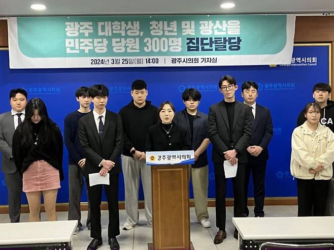 광주 대학생, 청년 및 광산을 민주당 당원 300명 일동은 25일 광주광역시의회에서 긴급 기자회견을 열고 “민주당이 지역의 목소리에 귀를 기울이지 않고, 오로지 당내 일부 인물의 개인적인 성공과 이재명 대표의 사법적 문제를 둘러싼 보호에만 집중하고 있다”고 말했다.