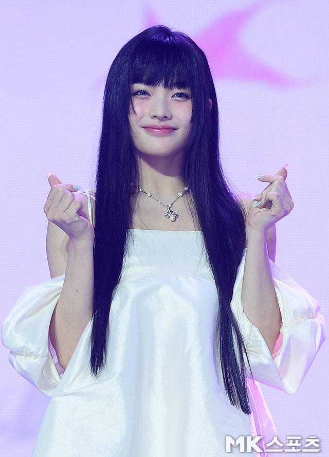 쇼케이스 앞서 아일릿 이로하가 포즈를 취하고 있다.