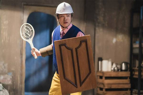 그렇다면 <닭강정>은 무엇으로부터 B급인가? 그리고 이런 병맛 감성을 통해 무엇을 담고자 하는가? 이 질문을 던졌을 때 원작이 병맛 웹툰이라는 것 이외의 유의미한 대답을 찾기 어렵다. 연극적인 과장된 연기연출과 대사의 펀치라인, 안재홍과 류승룡이 이미 증명한 바 있는 이병헌 감독식 코미디가 주는 기대치는 분명 있다. 하지만 <닭강정>이란 한 편의 드라마를 끌고 가는 데 그 어떤 역할을 하지 못하는 것은, 정서나 감성, 문화적 맥락 없이 이름값과 스타일을 너무 과신하고 과도하게 내세운 영향이 있다고 판단한다. 말도 안 되는 코미디가 감싸고 있는 황당한 세계관이 신선한 호감으로 다가오지 않는 건 이 때문이다. 어차피 개연성 없음이 <닭강정>의 한 가지 웃음 포인트라고 하지만, 전혀 빌드업이 안 된 채로 마지막 화에서 드러나는 현실주의를 담은 주제의식이 허무하게 다가오는 이유다.