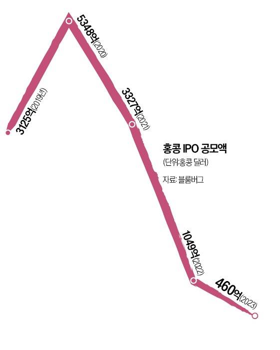 24일(현지시간) 블룸버그에 따르면 지난해 홍콩 자본시장의 기업공개(IPO) 규모는 460억홍콩달러(약 7조8894억원)를 기록했다. 1년 전 대비 56% 감소했다. 닷컴 거품이 꺼진 2001년 이후 최소치다. IPO를 성사시킨 기업 수는 전년 대비 80% 감소한 67개에 그쳤다. 10억홍콩달러 이상 조달한 기업은 13개에 불과했다.