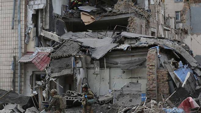 러, 우크라 키이우에 탄도미사일…격추 잔해에 10명 부상