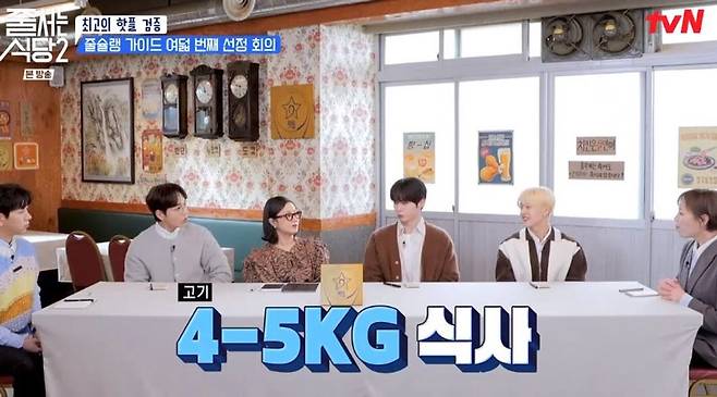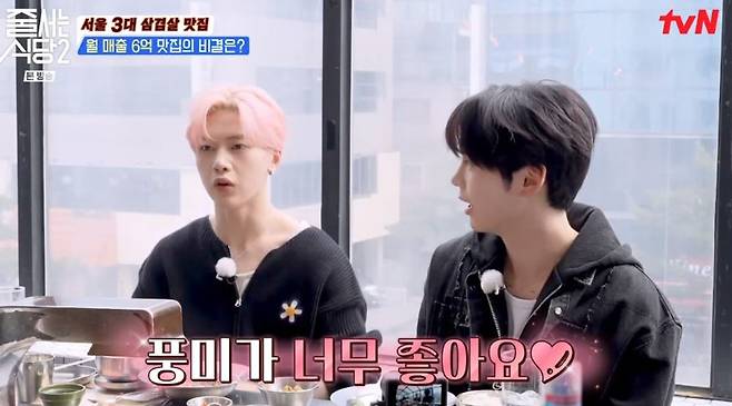 25일 tvN ‘줄서는 식당’에선 제로베이스원 성한빈과 석매튜가 게스트로 출연해 삼겹살 먹방을 함께했다.